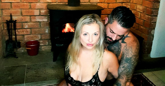 An intimate moment captured between a man and woman, set against the backdrop of an England-based photoshoot. This image features Charlotte Chots, a model known for her VIP content on OnlyFans. She is in a pose that showcases her playful nature and confidence in front of the camera.