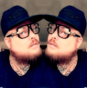 This is a color photograph of an adult male. He has a tattoo on his left arm and a goatee beard. The man appears to be indoors, in a room with wood paneling visible. He is looking directly at the camera with a neutral expression.
