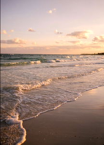Experience the tranquil beauty of a beach at sunset. Feel the sand under your feet and hear the gentle waves crashing on the shore. A perfect escape from the hustle and bustle of daily life.