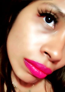 The model, known as FlaqkitA, is captured in a striking pose with vibrant pink lipstick. The background suggests an urban setting, and the overall composition of the photo conveys a sense of confidence and style.