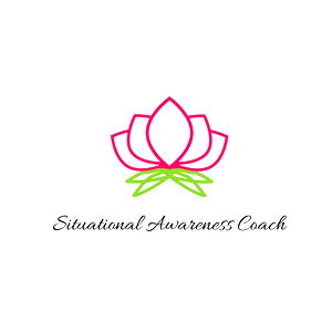 This image features a simple yet elegant logo design, which is likely intended for a coach named Alan Joseph specializing in situational awareness. The logo consists of a pink flower with the text 'Situational Awareness Coach' written underneath it. The flower symbolizes growth and nature, while the text suggests that the coach offers guidance on being aware of one's surroundings. The design is minimalistic and could appeal to those who value simplicity in their branding.