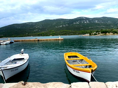 A person sitting alone at the end of a pier, overlooking the calm waters under a serene sky. The image captures a moment of quiet contemplation amidst nature's tranquility.