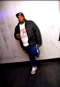 Remy Martin, aka Da Roc, standing confidently in a hallway with a purple wall. The image conveys a sense of style and charisma.