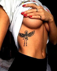 Discover stunning body art showcased on the beautiful Aaliyah. Her tattoo is a unique and vibrant piece of ink, standing out against her skin. Get inspired by her bold style and see how tattoos can be both personal and eye-catching. Join the conversation on social media using #tattooart #bodyart.