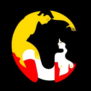 A stylized illustration inspired by Art Nouveau, featuring an onlyfans model as the central figure. The image is in black and white with a red accent, highlighting the model's form.
