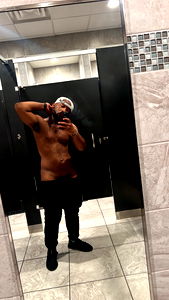 A gym selfie by Iโm Here For Yall, from Dreaming. The model is standing in front of a mirror with a gym backdrop. He has a confident and friendly expression on his face. The image seems to be promoting an event or service related to fitness or personal training, using the gym setting for brand awareness. It's meant to engage viewers in a relaxed yet motivational context.