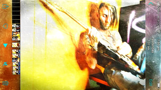 The image captures the moment where Bambams, a talented musician from Australia, is passionately strumming a guitar on a colorful stage. He's in a vibrant room bathed in red lights, immersed in creating music that resonates with his fans.