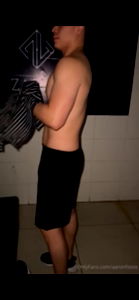 Aaron Fox, a popular OnlyFans model, captured in an intimate moment of self-examination. He's showcasing his physique and fitness level, possibly reflecting on his workout routine.