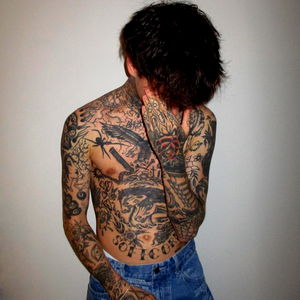 Aaron is a tattooed male model with striking features. His style is edgy and he exudes confidence in this image.