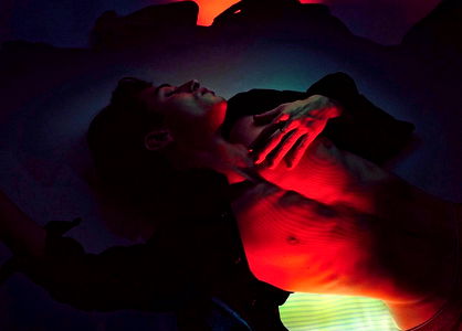 L.A. based model Aaron Wolfberg, known for his photoshoots on OnlyFans. Dressed in a white tank top, his confident and alluring pose is the epitome of style.