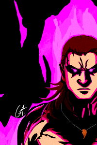 This is a digital artwork of a character with purple flames. The character stands confidently, embodying the essence of power and confidence. They are an onlyfans model named Aarth_imperador, hailing from ABC Paulista.
