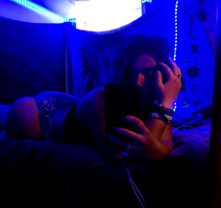 In this image, Abb is seen modeling in a blue room. She has taken a selfie in front of a mirror, showcasing her outfit and pose. The room's ambiance is enhanced by the blue light, creating an intriguing atmosphere for the photograph. Abb, with her unique sense of style and personality, stands out as a prominent OnlyFans model.