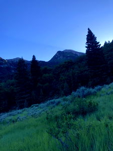 Experience the tranquility of a Utah mountainside at sunset, with pine trees dotting the landscape. This image encapsulates the serenity and beauty of nature in the state of Utah.