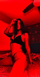 This image features a woman from Ohio who is an OnlyFans model. She appears to be in her late twenties or early thirties, judging by the aging and maturity visible in her facial features. The style of the photograph, with its red tint and artistic composition, suggests that it could have been taken for promotional purposes related to her content on the platform. The woman is wearing a black bra, which, combined with the context, strongly implies that the image may contain adult themes or nudity. Abi's style of pose and attire suggests a confident and self-assured personality typical of OnlyFans models who actively engage with their audience.