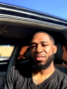 This image features a young man sitting in the passenger seat of a vehicle. He appears to be a model based on his well-maintained appearance and confident pose. His attire suggests that he might be attending an event or simply enjoying some time outdoors.