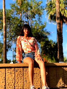 AbrilDTC is captured in a vibrant outdoor setting, exuding confidence and style. She's positioned against the backdrop of a scenic hillside dotted with trees, and her cheerful demeanor adds a lively touch to the scene.