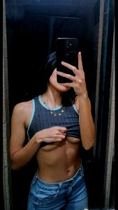 A Latino América model named ABRIL ☀️❤️🔥, known for her fitness and confidence. She's captured in the mirror, posing with her hand on her hip, demonstrating her dedication to wellness. Her image conveys a message of body positivity and personal empowerment.