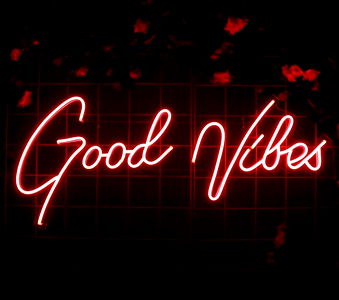 A stylish and unique neon sign that spells out 'Good Vibes' in a modern design. Perfect for any space, this illuminated sign is handcrafted from neon glass, giving off a cool and trendy vibe. Add a personal touch by customizing the name on the sign to fit your brand or event.