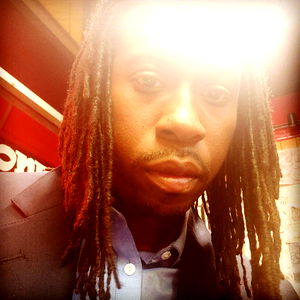The image depicts an individual with a beard and dreadlocks, who is looking to the left with a neutral expression. He has a relaxed posture and appears to be seated in a public space, possibly a cafe or restaurant. The person is dressed casually and has a relaxed demeanor.
