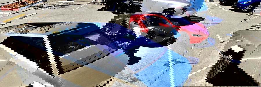 An Andrรฉs C. custom car parked amidst other luxury cars in a spacious lot, showcasing its unique and futuristic design.