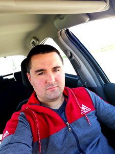 Aca Stanojevic is a young man standing outdoors, taking a photo of himself. He is wearing a casual, short-sleeved shirt and stands confidently. His facial expression seems relaxed and approachable.