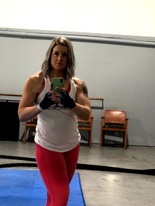 Amanda, known for her dedication to fitness and health. She is captured in the midst of a workout, demonstrating strength and determination. Her passion shines through her actions and her commitment to staying active.