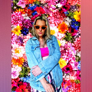 Model and OnlyFans content creator, AC from London. Posing with a floral backdrop in casual attire.