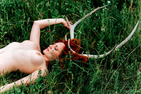 AcZel is a Budapest-based onlyFans model known for her unique and provocative photoshoots. In this image, she is captured in a moment of tranquility amidst a field of wildflowers. She's adorned with a pair of deer antlers, adding an element of mystery to her persona. This image captures the essence of AcZel's creative and sensual style, blending nature with an air of mystique.