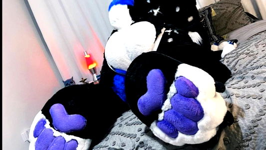 Anthropomorphic feline model poses confidently on a bed. Styled with blue fur, black spots and a white chest, Monstruo exudes a unique blend of ferocity and fashion. This striking image captures the essence of creativity and individuality in animal-human hybrid fashion.