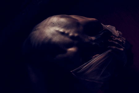 An intimate and artistic photograph featuring the Onlyfans model Ada Ardente. She is captured in a candid moment of introspection, with her body curled around a window sill. The black and white aesthetic adds to the emotional intensity of the image. The viewer's gaze follows the curve of her form, creating a sense of intimacy between the model and the audience.
