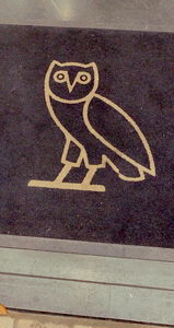 A sleek and stylish owl logo design with a golden hue, set against a white background. It features a stylized owl in flight, embodying the majesty and mystery of this nocturnal bird. The logo's modern design makes it perfect for various branding purposes. Model A.R.'s creativity is highlighted through this design, showcasing a blend of simplicity and sophistication.