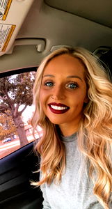 Photograph of an OnlyFans model named Addison. The image captures her in a car, posing for the camera with striking lipstick and a confident expression. She appears to be a young adult, and the tagging suggests that this photo is part of a promotional campaign for her content on the platform. It's important to note that this description is based solely on the visible content and does not include any assumptions or inferences about the individual.
