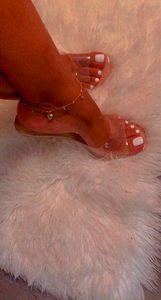 Queen Of Sheba, a OnlyFans model, showcasing her pedicure with blue nail polish.