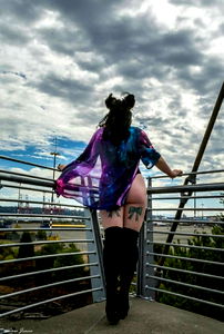 Anne, a strong and vibrant individual from Seattle/Portland, enjoys a day of adventure amidst nature's beauty. With her swimsuit and a sense of adventure, she takes in the breathtaking view of the river and the surrounding forest.