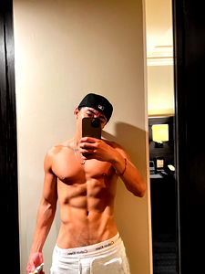 This image showcases a young man in his early twenties standing inside an indoor environment, striking a pose that highlights his well-maintained physique. He appears to be a model, given the focus on his fashion and physical appearance. He is bare-chested, exposing his well-defined muscles, particularly in the chest, shoulder, elbow, and abdomen area, hinting at his commitment towards physical fitness. The man's attire is limited to a piece of clothing around his waist, adding a trendy touch to his look. This waist attire, possibly a low-hanging trouser or a wraparound, emphasizes his narrow waist and broad hip structure. His fashion accessory, potentially a belt or similar item, adds a hint of vogue to his otherwise minimal outfit. The man's face, which is clear and prominent in the image, expresses a sense of confidence. His strong facial features contribute to the overall appeal of the photograph. He is not wearing any recognizable celebrity-like features, suggesting that the focus is on the generic representation of male fashion and fitness. This image strongly represents the concepts of fashion, fitness, and masculinity.