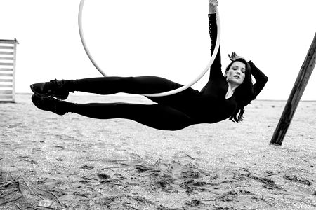 Sensual and captivating OnlyFans model Green, a Romanian beauty. Her photo showcases her graceful posture on a suspended swing with her hair adorned with a vibrant pink flower. She exudes an air of elegance and allure.