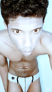 Aethelsthan, a model from Bogotรก, Colombia, showcases his physique in this striking pose. With a confident gaze directly into the camera, he demonstrates a casual yet stylish look.