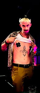 A young male model with a distinctive tatoo, showcasing his unique style. Wearing a vibrant shirt and sunglasses, he adds a touch of mystery to his character.