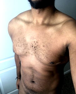 Denver-based OnlyFans model AfroDeziak Entertainment showcases his fitness journey with a progress photo. The image captures his dedication to bodybuilding, featuring a defined chest and toned abs. Get an inside look at his workout routine and fitness goals.