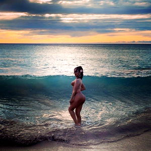 In this breathtaking beach photoshoot, Portland's OnlyFans model Afrodidenta captures a moment of serene beauty. She stands confidently on the edge of the ocean, her body turned towards us, exuding an air of allure and charm.