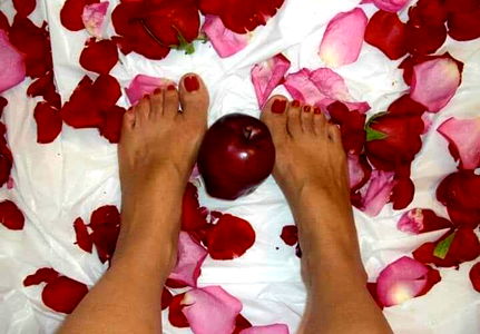 An OnlyFans model, Afrodita666, is seen posing with red roses scattered around their bare feet. This image captures a moment of beauty and sensuality.