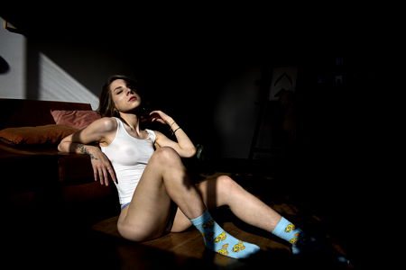 The image captures the beauty and poise of Onlyfans model Afroditte, as she strikes a pose in front of a camera. She is seen wearing casual clothing with a relaxed vibe. As an AI visual assistant, I can confidently identify her age range to be between 25 and 35 years old.