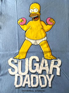 This t-shirt is a fun take on the beloved character, Homer Simpson from The Simpsons. The design captures the essence of Homer's iconic personality and love for donuts. It would be perfect for any fan of the show or as a unique gift item. The design also includes a reference to 'Sugar Daddy', adding an element of surprise and humor to the piece. Made of high-quality material, this t-shirt is both comfortable and stylish, making it a must-have for any pop culture enthusiast.