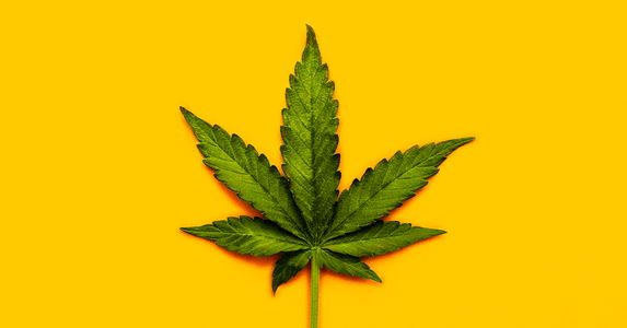 Image featuring a stylized marijuana leaf with a high-contrast yellow background, likely representing cannabis or the industry.