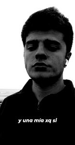 In the image, there is an individual with a neutral expression. The individual appears to be an adult male wearing a dark top. He has short hair and is looking directly at the camera. On the right side of the photo, there is text that reads 'y una mia xq si'. Below this text, there's a graphic element resembling a stick figure or icon with a speech bubble containing the same text as above. The background is a plain white color. The style of the image seems to be casual and candid, likely from a personal collection or a social media platform.