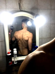 Onlyfans model Rubio XXX, known for his work in Virrey del Pino/La Matanza. He showcases his physique in this image, taken from the perspective of a bathroom mirror.