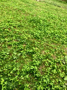 A breathtaking view of a verdant countryside under a clear sky. A mountain bike is parked in the foreground, hinting at an adventurous trip through the hills. The vibrant green field extends into the horizon, with only a few trees dotting the landscape.