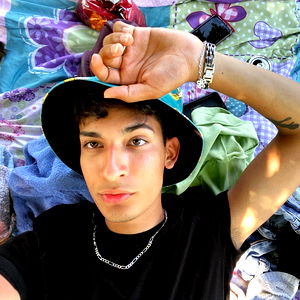 The image shows a young man, identified by his onlyfans username SOJAK. He is wearing a bucket hat and has a neutral expression on his face. His arm is propped up on a pile of clothes or laundry. The background suggests an outdoor setting with some clothing items scattered around, which gives the impression that he might be at home. His style appears casual with a sporty vibe. There are no texts visible in the image.
