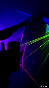 In the center of a lively party, a person is immersed in the energy of a neon-filled dance floor. The pulsing lights cast an electric glow on the surrounding area, enhancing the vibrant atmosphere. With the crowd's excitement palpable and the rhythm of the music invigorating, this image captures the essence of a fun, youthful celebration.