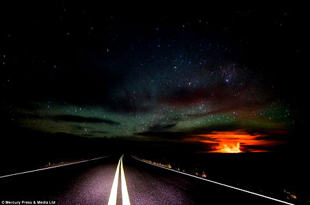 A model photograph capturing a scenic highway at night, featuring Aida Rhee in the foreground. The image conveys a sense of adventure and freedom.